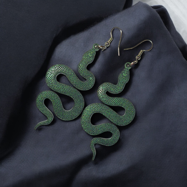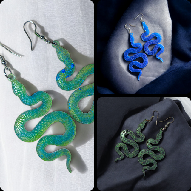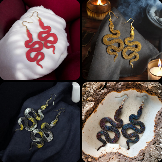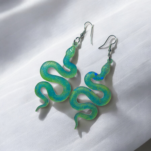 Inspirées d'Itzamna, divinité Maya du Ciel, de la Nuit et du Jour, les boucles d'oreilles Itza sont conçues à la main, ces boucles serpent en résine époxy.