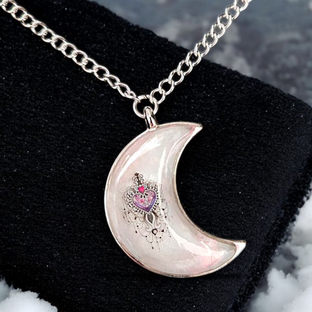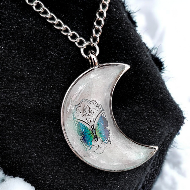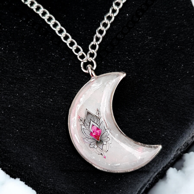 Le collier Lyana est une ode à l’astre lunaire, capturant son énergie dans un pendentif unique, réalisé à la main. Avec son inclusion en résine UV, il reflète un univers mystique, entre symboles ésotériques et motifs enchanteurs.
