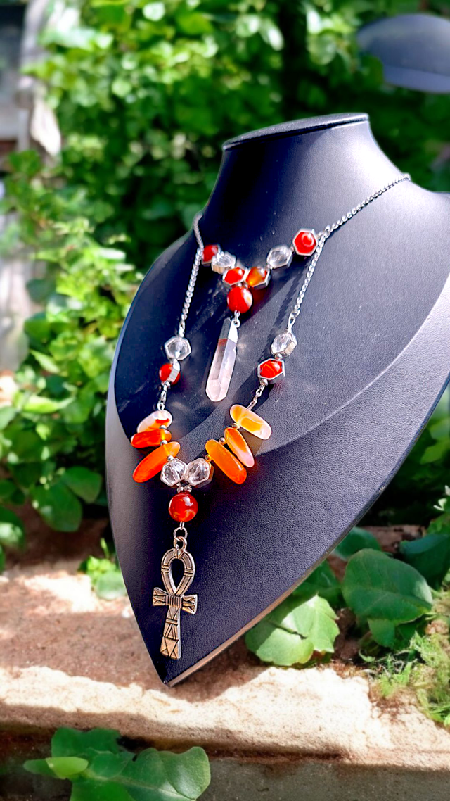 Collier SEKHMET - Croix d'Ankh et cornaline