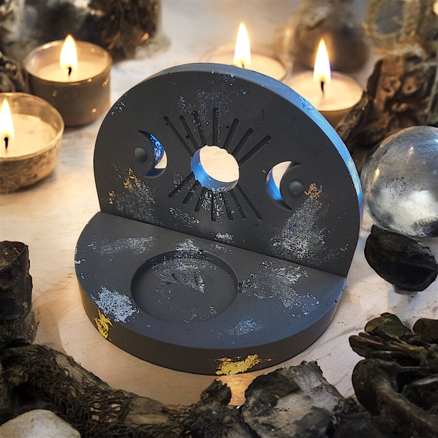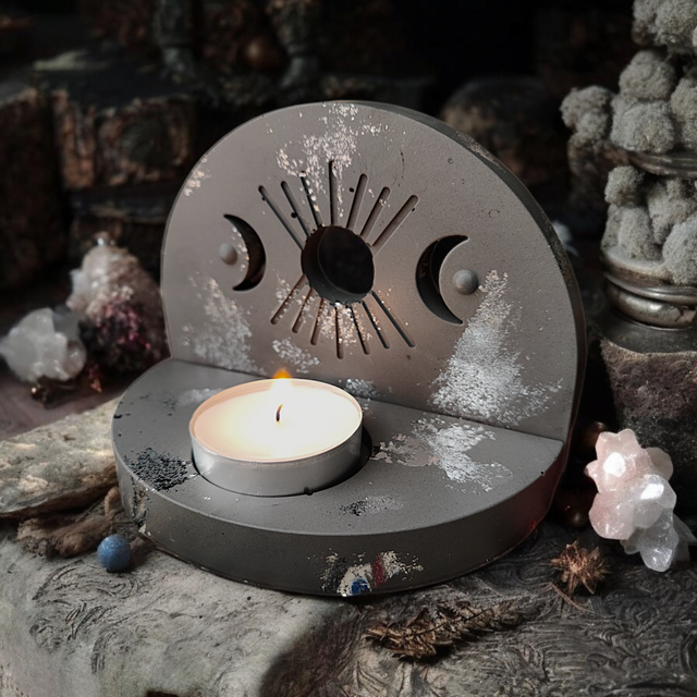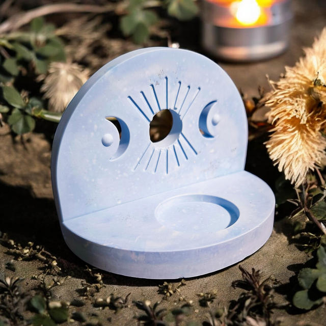Ce repose-bougie, conçu pour accueillir une bougie chauffe-plat, allie esthétique mystique et utilité pour illuminer tes rituels ou tes moments de détente.
