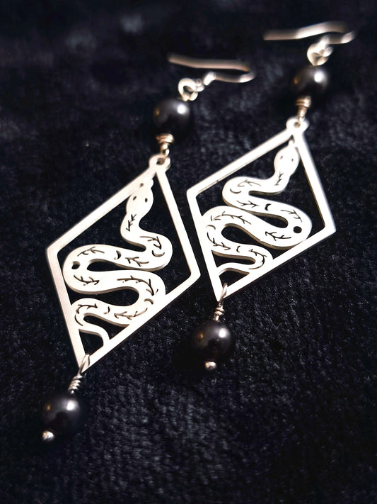 VRITRA - Boucles serpent & onyx noir