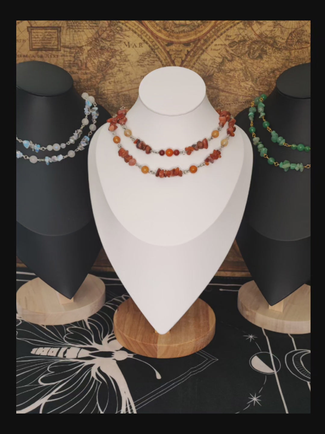 • Piedras naturales (perlas y chips): Cada collar está adornado con piedras cuidadosamente elegidas por su energía.